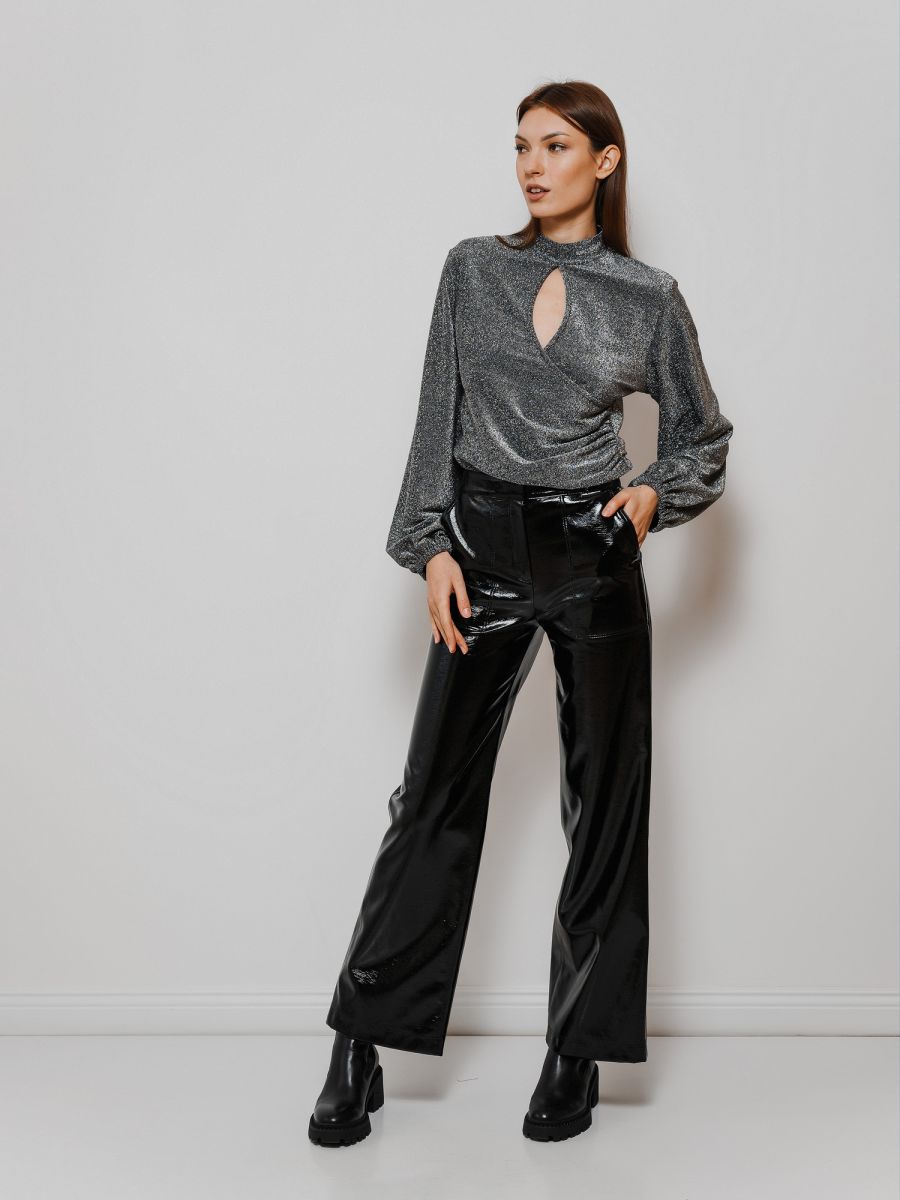 Брюки из лакированной экокожи