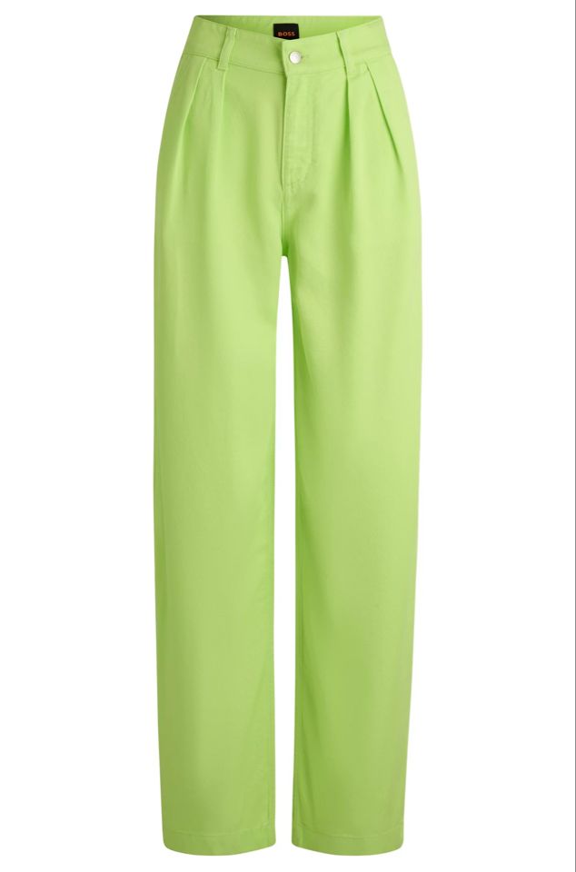 Женские лёгкие брюки от BOSS Womenswear. Эта модель с широкими штанинами выполнена из мягкого твила и имеет плиссированную талию для идеальной посадки. Для продукции BETTER BOSS всегда используется как минимум на 60 % лучшее экологичное сырье. Совместно с внешними организациями бренд BOSS стремится уважительно относиться к девственным лесам и лесам, находящимся под угрозой исчезновения.