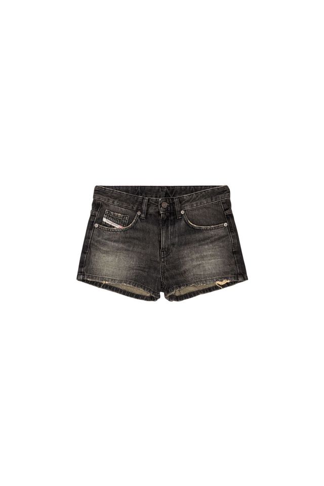 Женские джинсовые мини шорты от бренда Diesel в стиле 90-ых. Эта модель выполнена из чёрного денима, дополнена потёртостями и эффектом выцветания, что создает аутентичный вид изделия. Шорты от Diesel прекрасно дополнят Ваш летний образ.