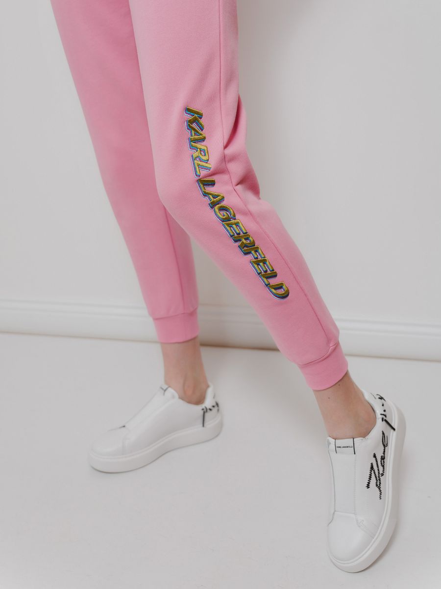 Классические спортивные штаны с манжетами из органического хлопка украшены футуристическим логотипом KARL с трехмерным эффектом на нижней части левой штанины. Сочетайте эти джоггеры с соответствующей футболкой или толстовкой, чтобы создать стильный повседневный образ.