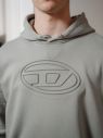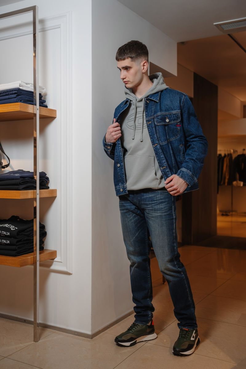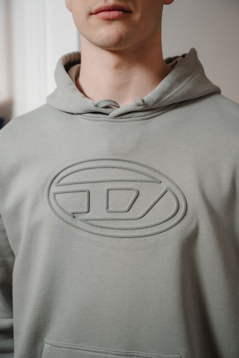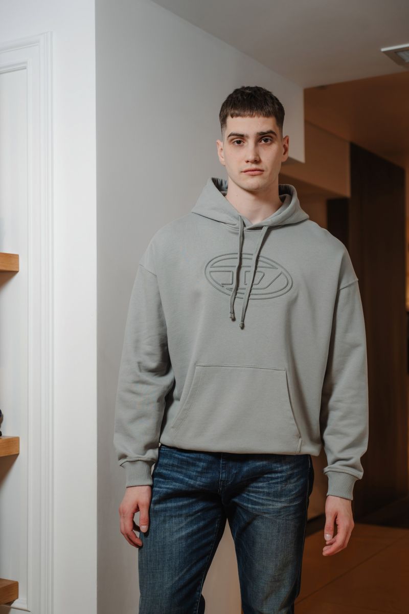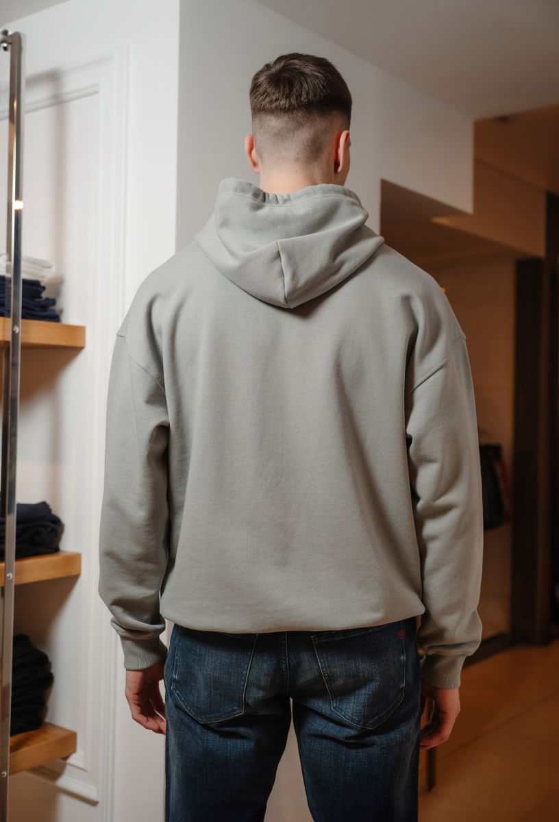 Худи с капюшоном и логотипом бренда на груди отлично подойдет для создания разнообразных повседневных образов.