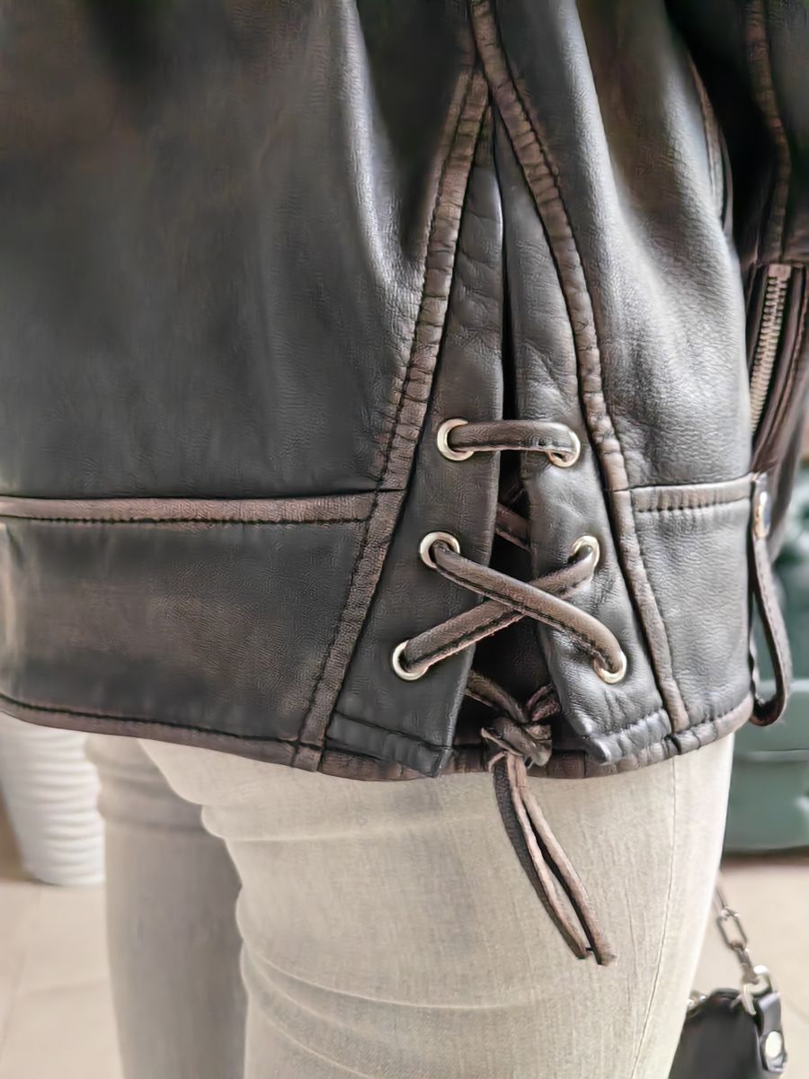 Изысканная куртка с фирменными деталями. Эта модель, выполненная из натуральной кожи, украшена фирменной подкладкой, шнуровкой и отделкой.