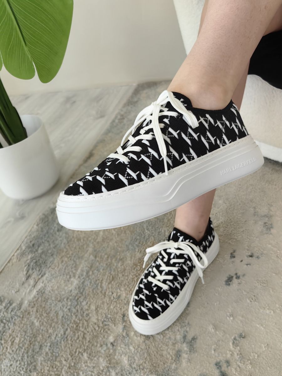 Откройте для себя перспективный подход к роскошной обуви с этими кроссовками из новой коллекции KARL LAGERFELD. Абсолютно невесомая модель будут лучшим вариантом для долгих прогулок, текстильный верх обеспечит благоприятный микроклимат стопе, а культовый дизайн выведет эту пару в центр внимания. Это изделие изготовлено из переработанного полиэстера, что способствует развитию экономики замкнутого цикла.