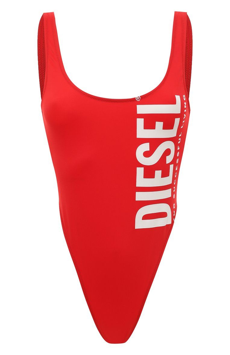 Цельный купальный костюм от бренда Diesel, образующий обтекаемый силуэт с высокой посадкой, сочетающий в себе комфорт и сексуальность. На данной модели с левой стороны напечатан большой логотип бренда. Изделие изготовлено из переработанной эластичной ткани и имеет классический вырез на спине.