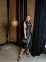 Стильное платье без рукавов с V-образным вырезом и воротником с лацканами. Двубортная застежка и пояс с пряжкой придают этому изделию современный вид. Такое платье прекрасно подойдет для женственных и эффектных образов.