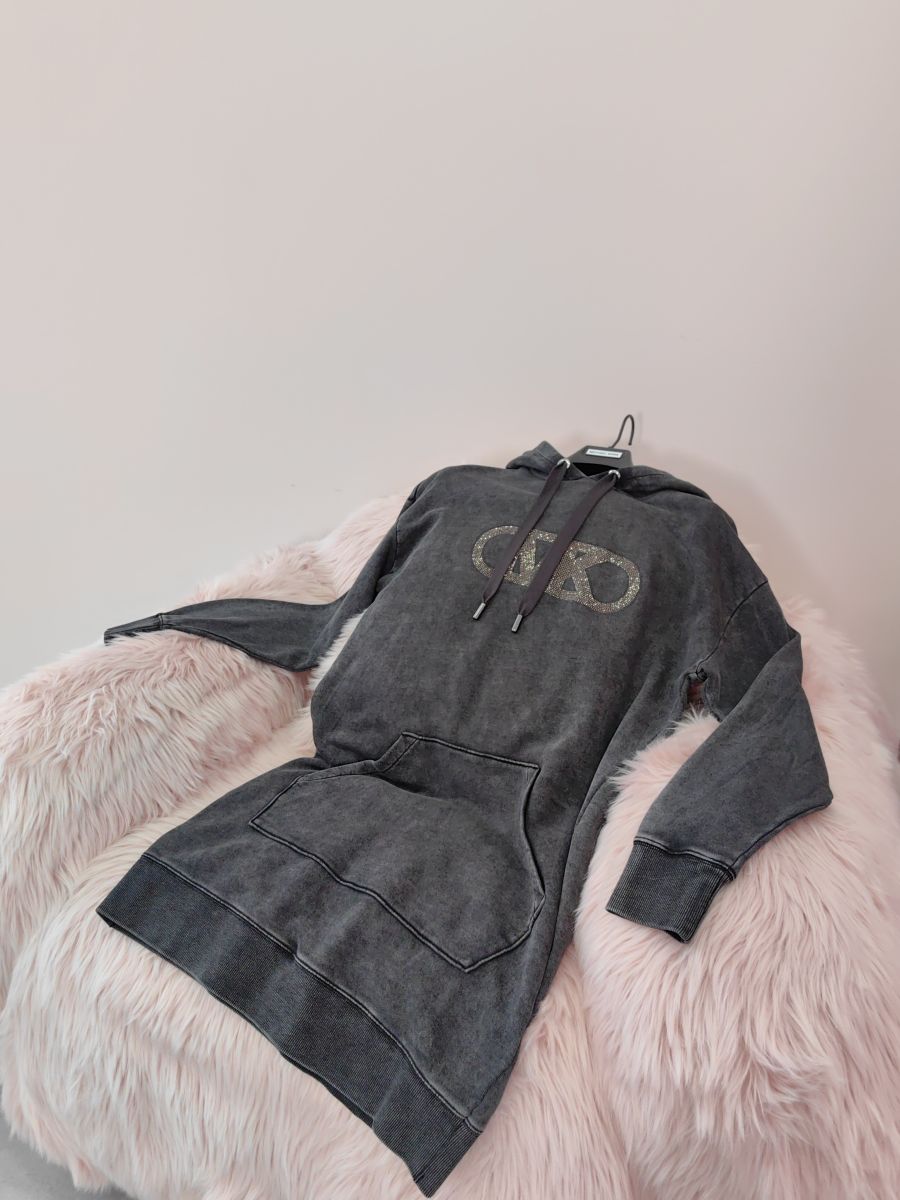 Платье-худи с монограммой из страз