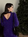 Платье с длинными рукавами и вырезом сзади выполнено из пушистой блестящей пряжи, чрезвычайно элегантный образ сочетается с комфортом и уютом.