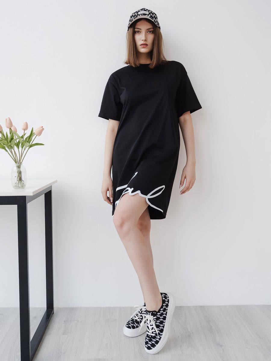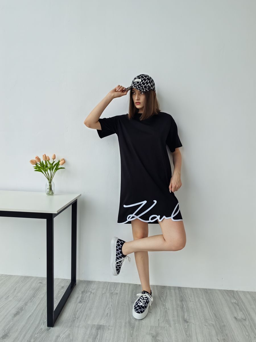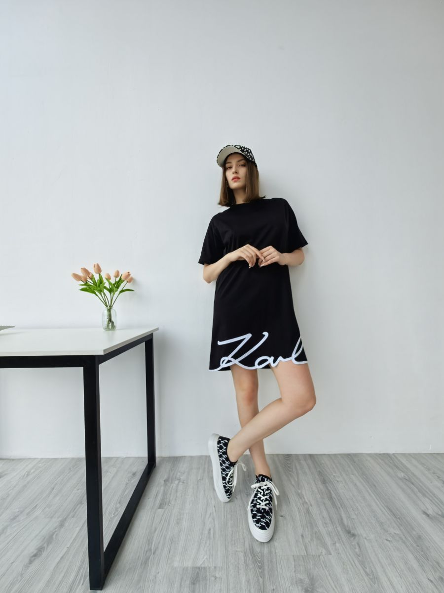 Знаменитый логотип KARL Signature придает игривый вид этому классическому платью-футболке из органического хлопка. Невероятно универсальную, эту летнюю вещь можно надеть с босоножками на толстом каблуке для создания романтичного образа или в сочетании с массивными белыми кроссовками, создавая образ более расслабленным. Эта модель выполнена из 100% органического хлопка. Органические хлопковые волокна не содержат токсичных пестицидов и химических удобрений.