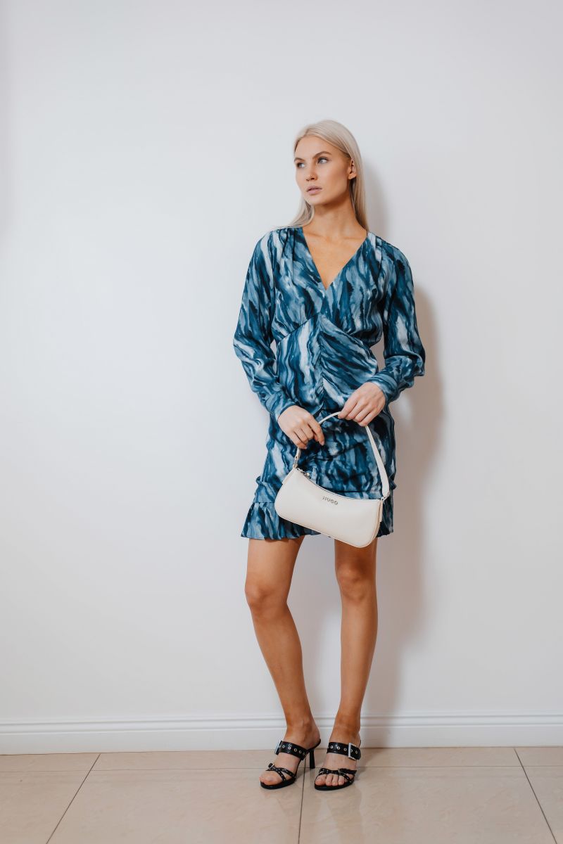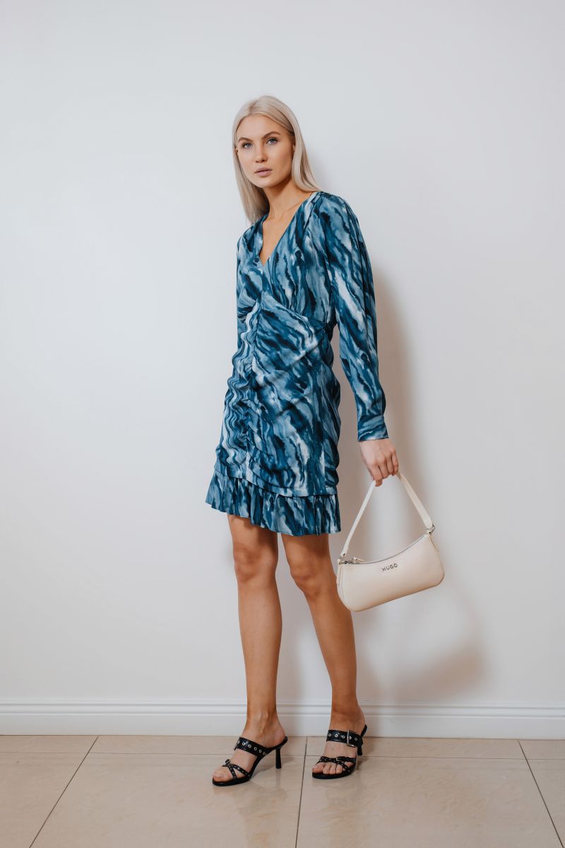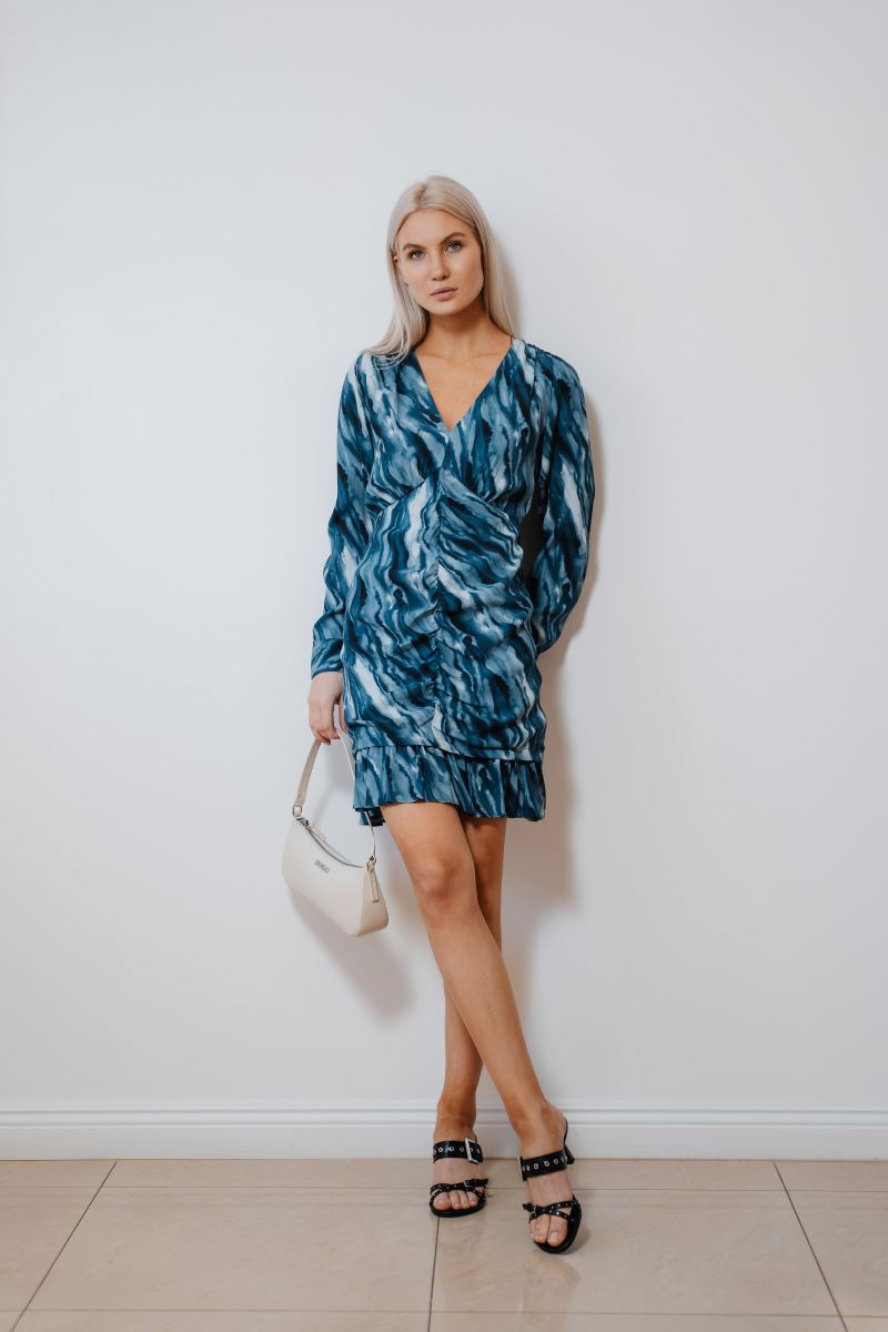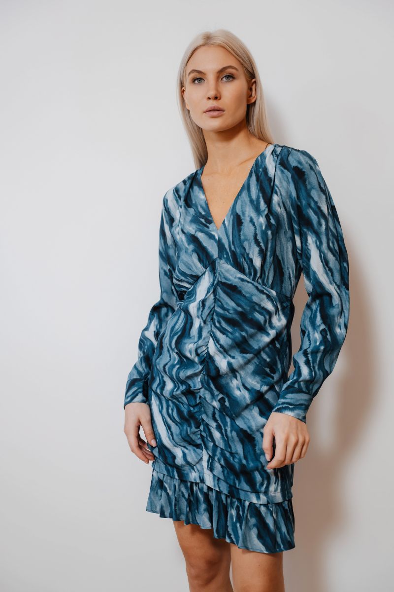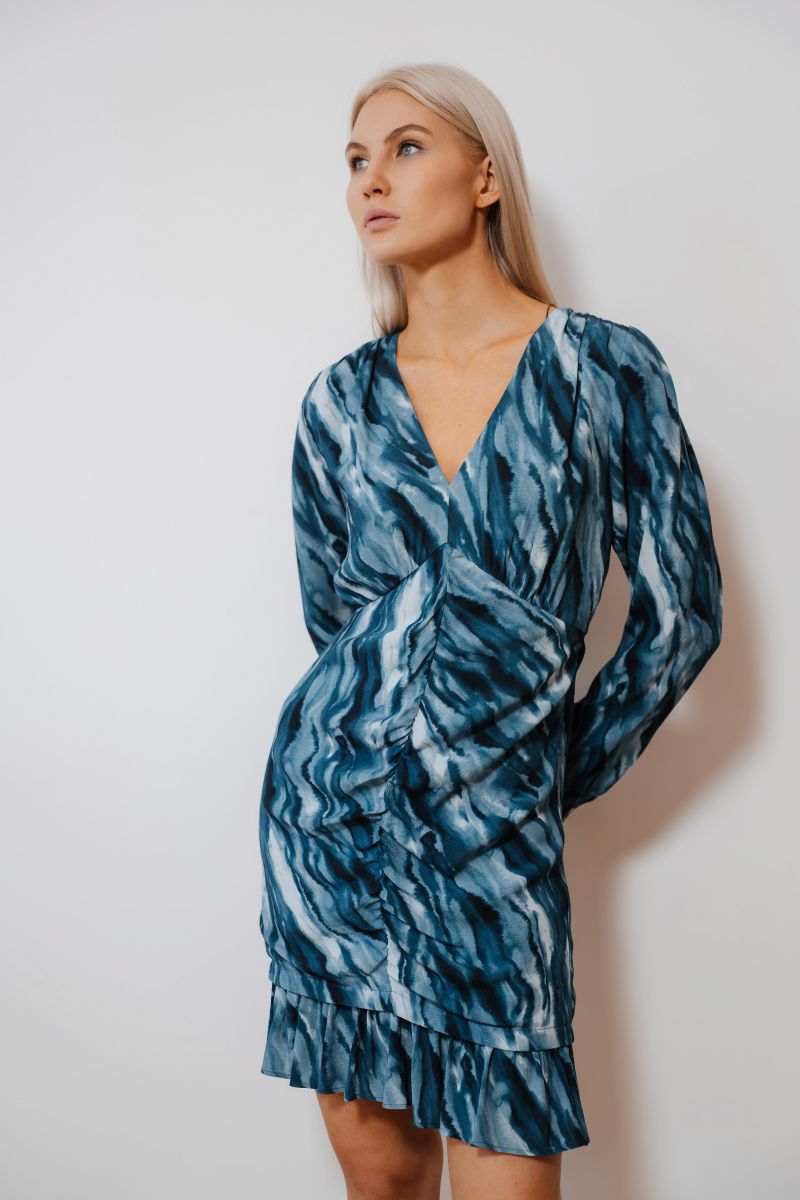 Платье со сборкой спереди и принтом