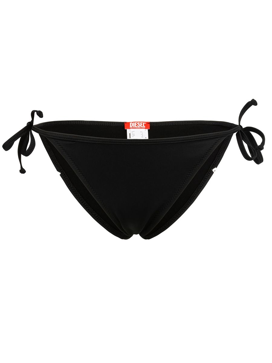 Классические купальные плавки бикини от Diesel выполнены в чёрном цвете. Завязки на бедрах помогут комфортно посадить изделие по фигуре, отрегулировав посадку. А идеально подобранное сочетание полиамида и эластана в составе помогут изделию сохранять первозданный вид спустя множество стирок.