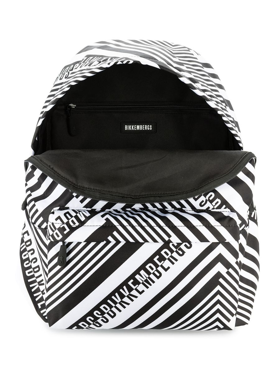 Стильный рюкзак от BIKKEMBERGS украшен сплошным принтом по всей поверхности. Модель оснащена застежкой-молнией с двойным бегунком, внешним карманом и мягкими плечевыми ремнями. Этот практичный и модный аксессуар станет неотъемлемой частью городского комфортного образа.