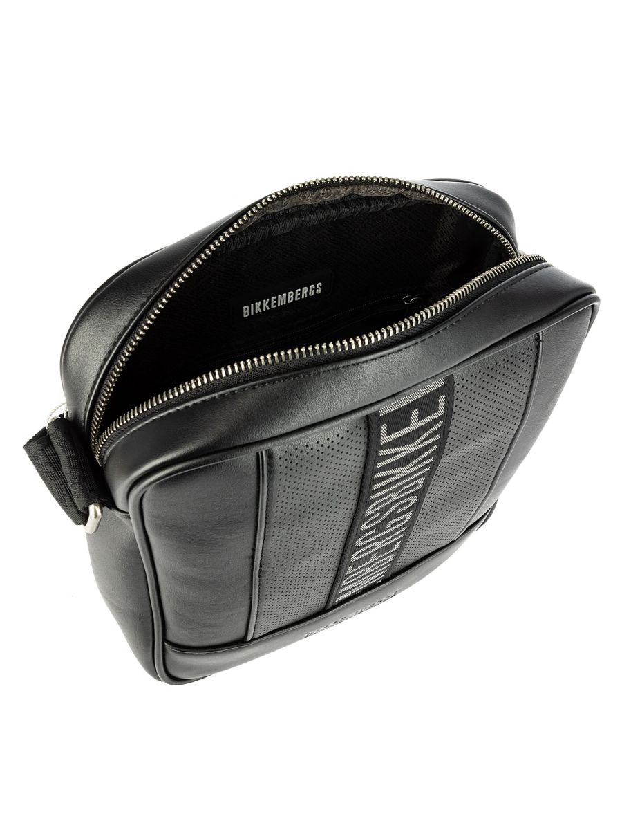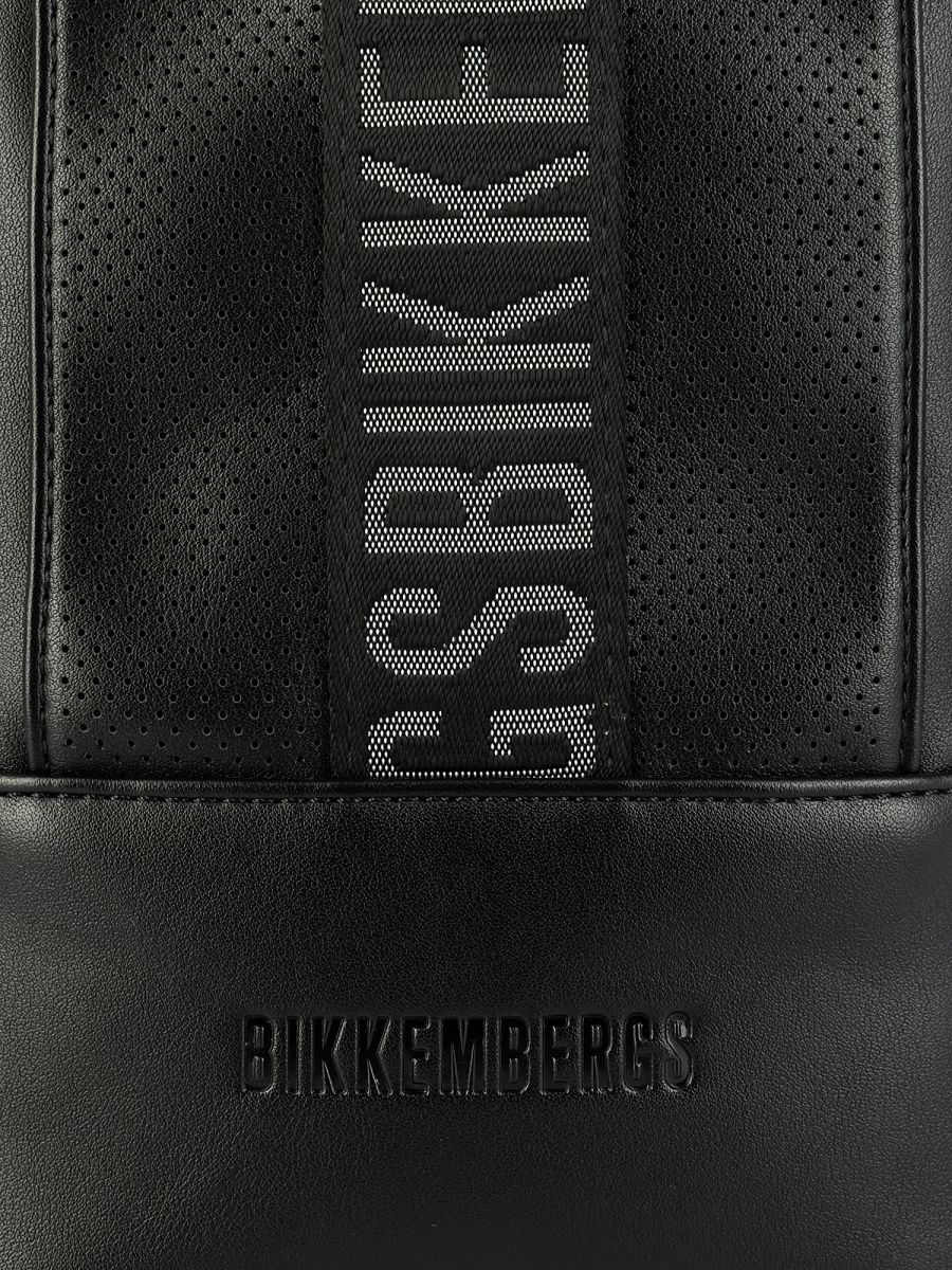 Эта практичная мужская сумка может вместить всё, что нужно, не будучи громоздкой. Сумка из экокожи с застежкой-молнией дополнена регулируемым плечевым ремнем. Спереди модель украшена жаккардовой тесьмой с контрастной надписью BIKKEMBERGS.
