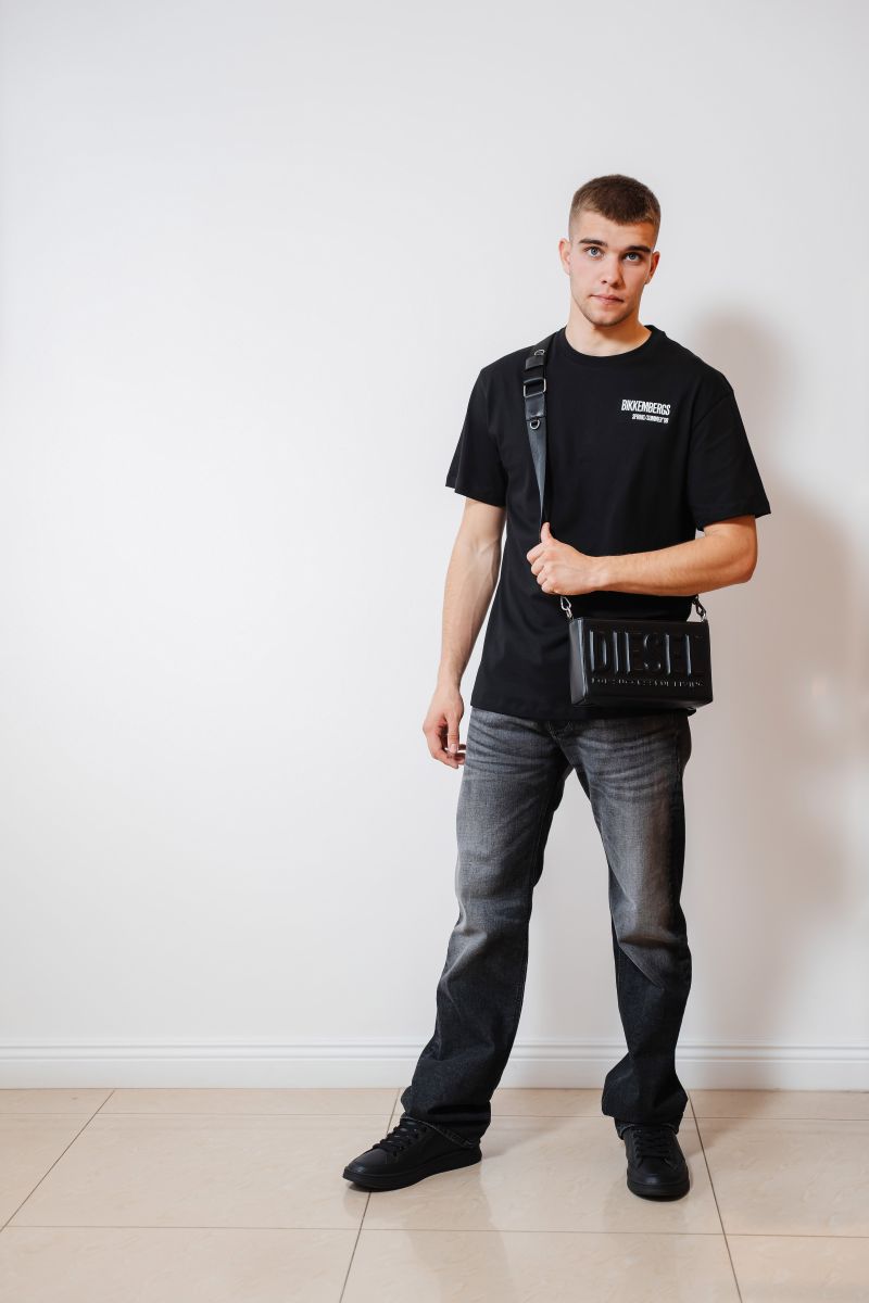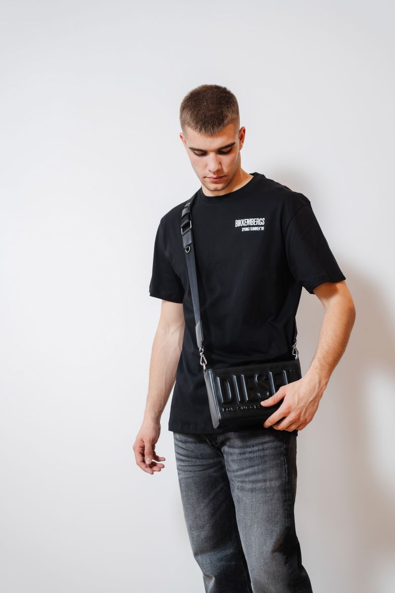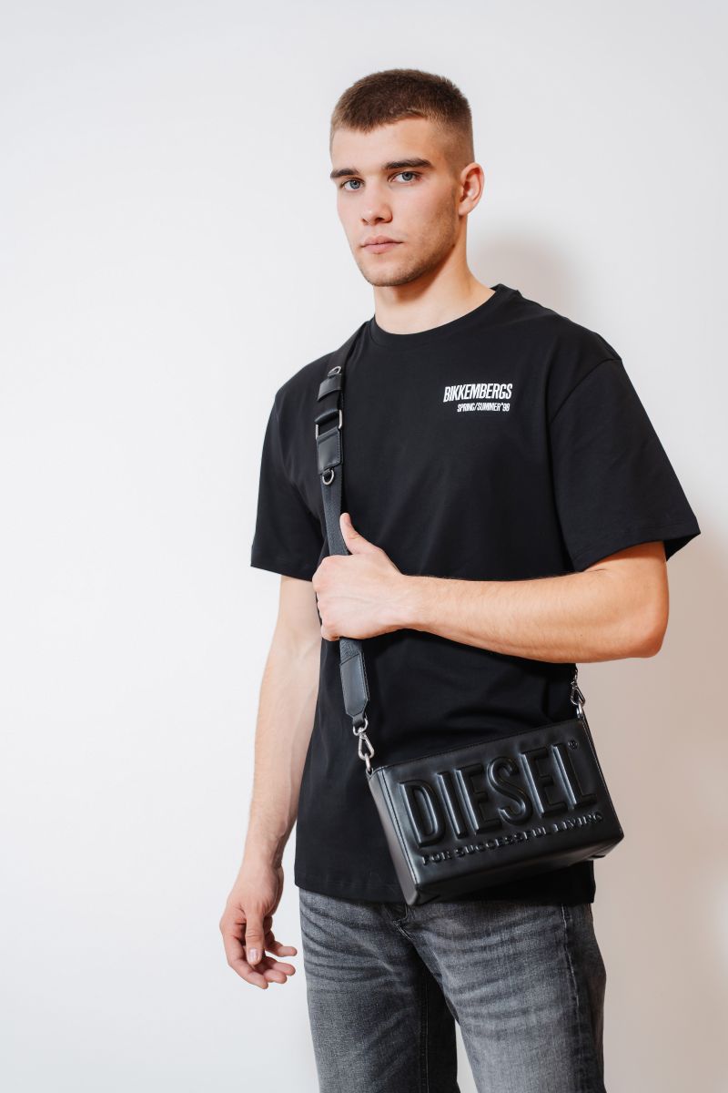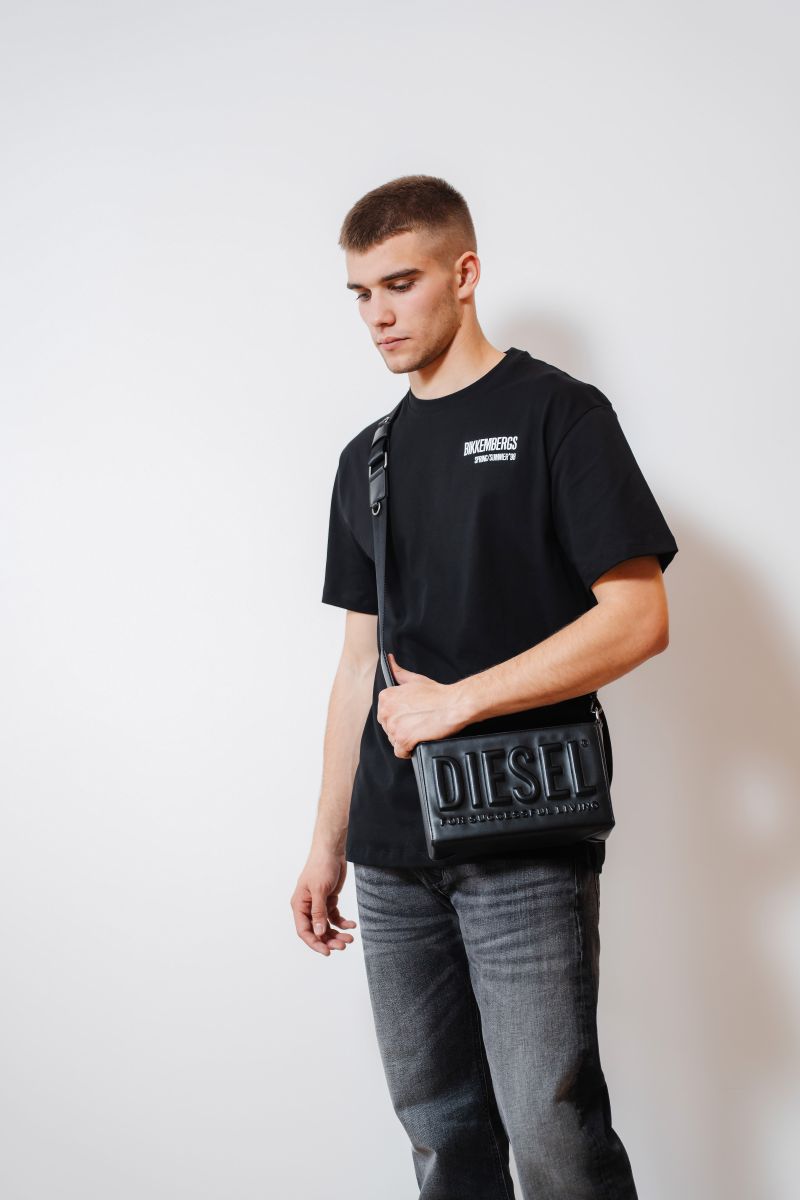 Современная сумка с крупным логотипом от бренда DIESEL на ремешке через плечо. Добавьте данный аксессуар для завершенного стильного образа.