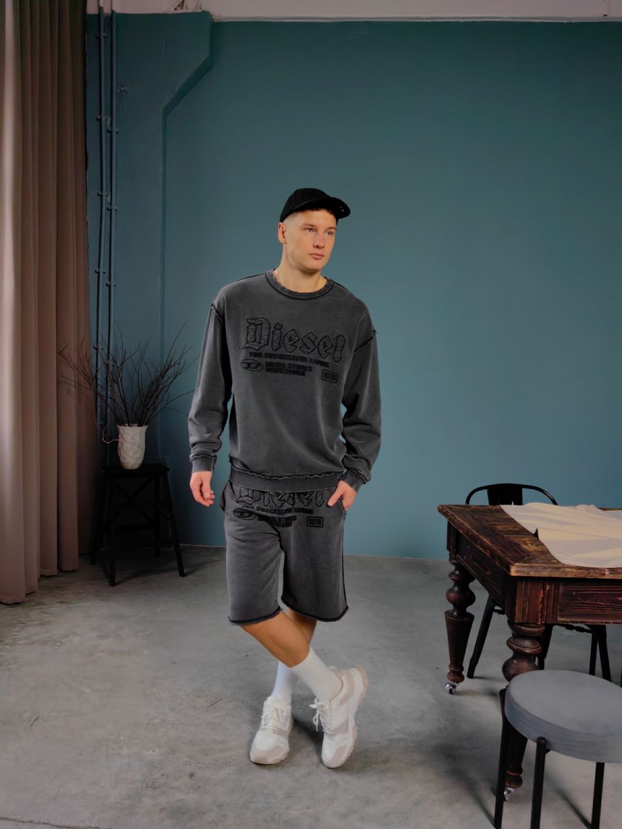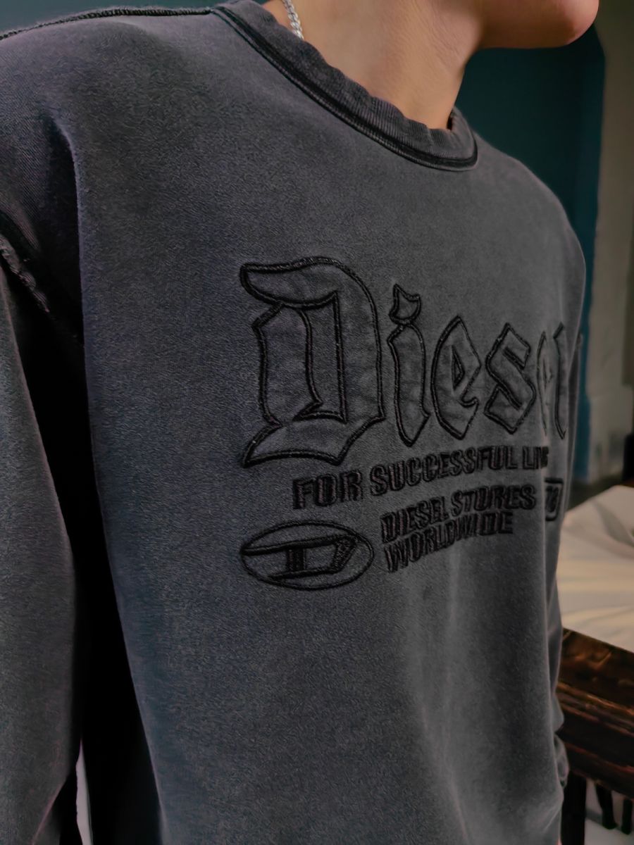 Универсальный свитшот свободного кроя, изготовлен из хлопкового трикотажа, украшенный логотипом Diesel, подарит ощущение уюта в прохладные дни.