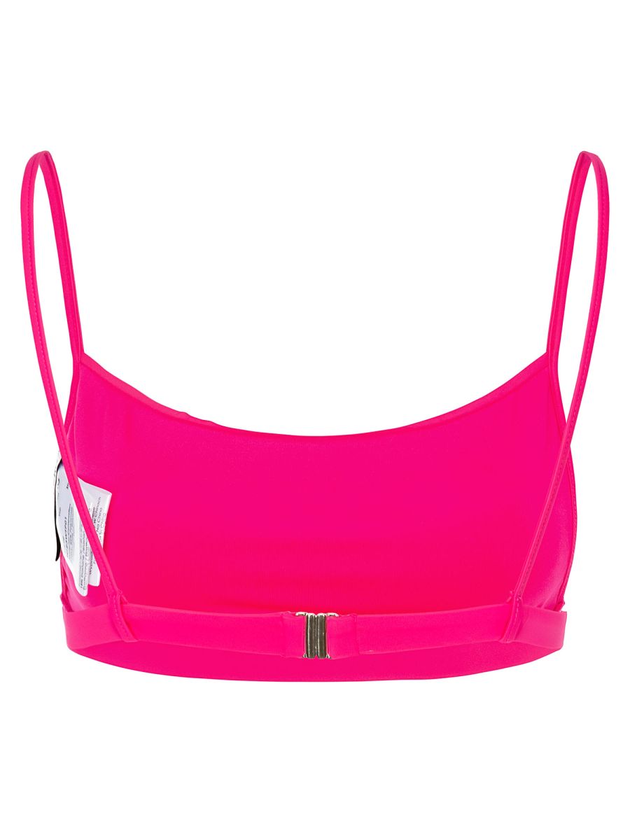 Этот современный верх купальника в трендовом цвете фуксия, выполнен в виде топа на тонких бретелях, станет ярким дополнением Вашего гардероба на летний сезон.