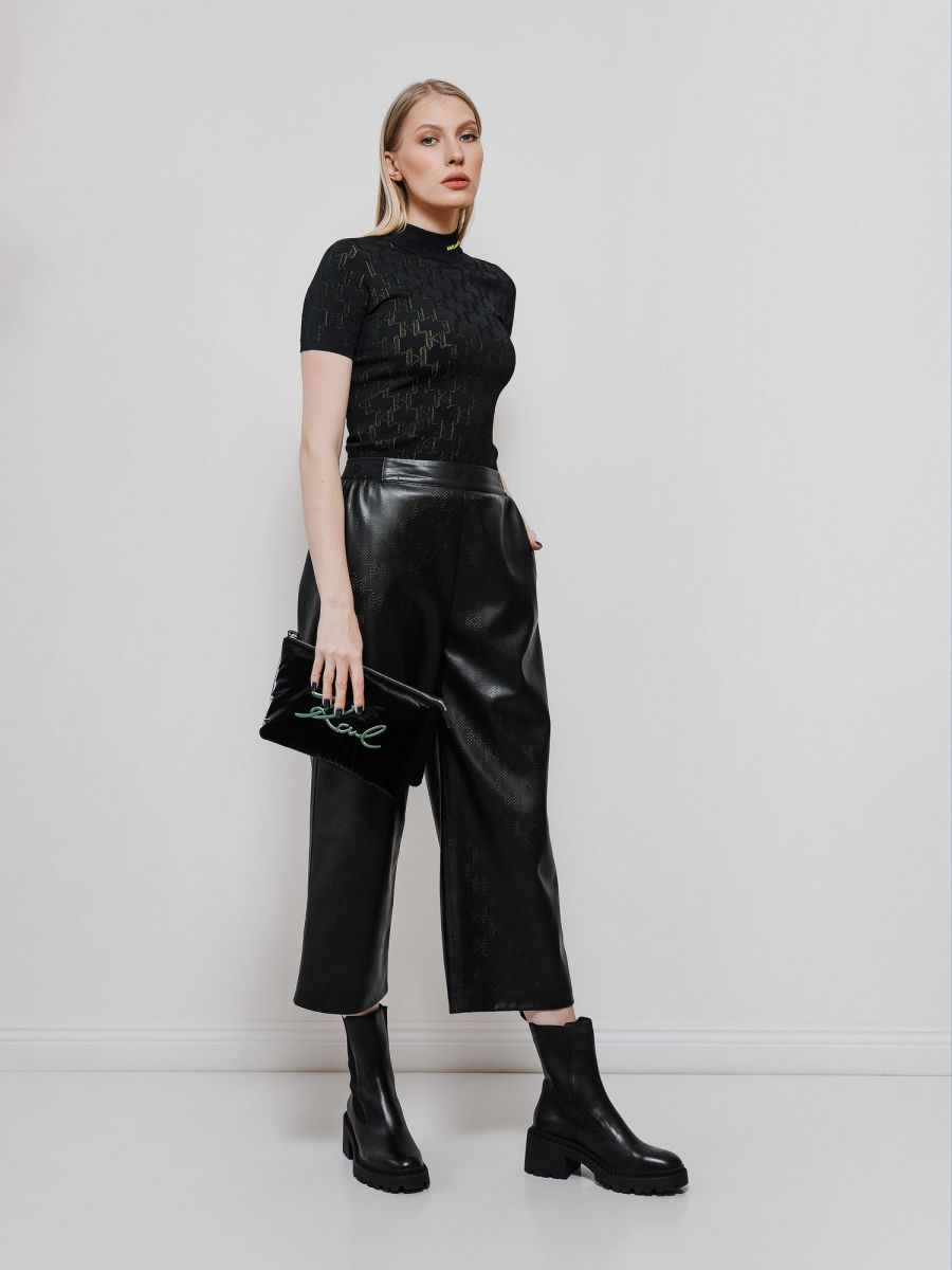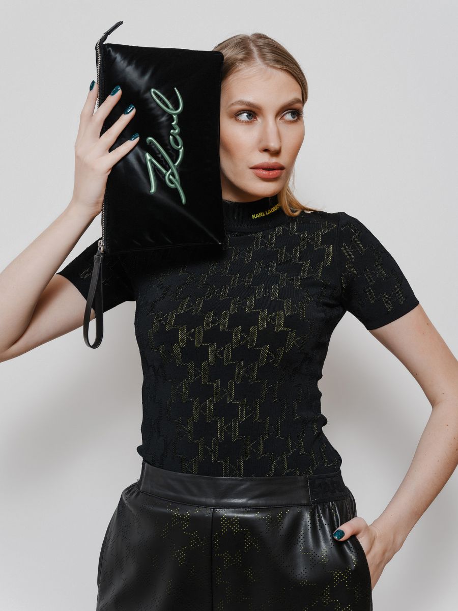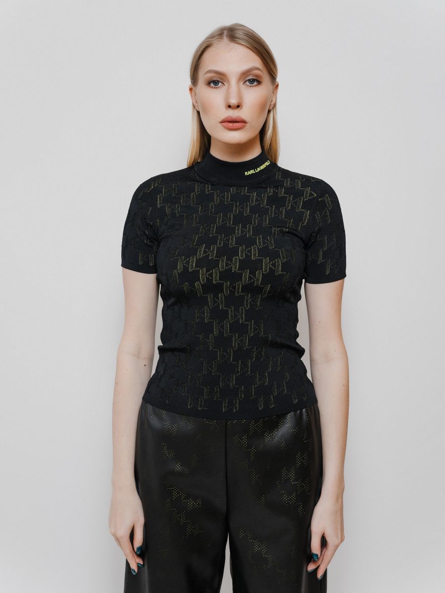 Элегантная водолазка из трикотажа букле, украшенная красочным узором с логотипом KARL Monogram из перфорированного трикотажа. Эта культовая модель из вискозы отличается облегающим кроем и дополнена высоким воротом с вышитым контрастным логотипом KARL.