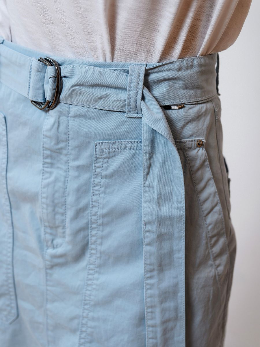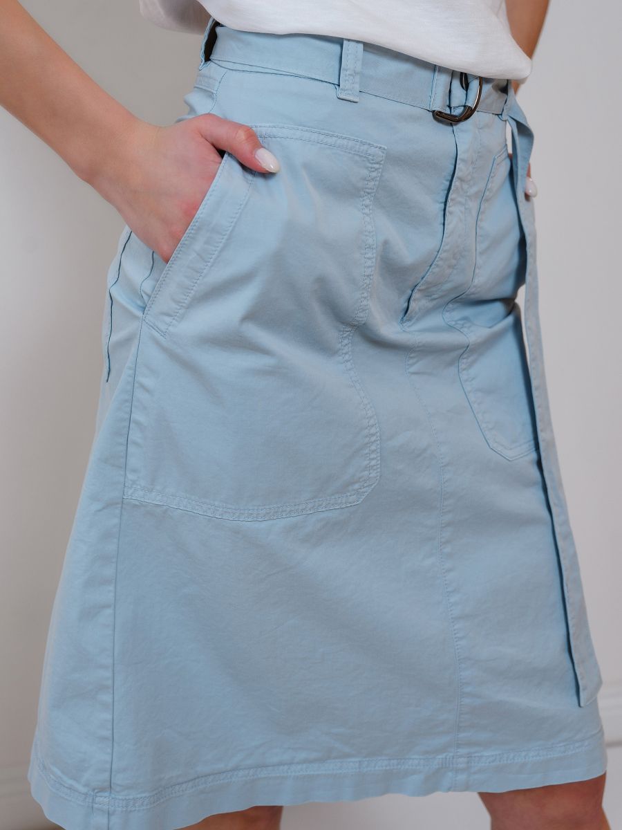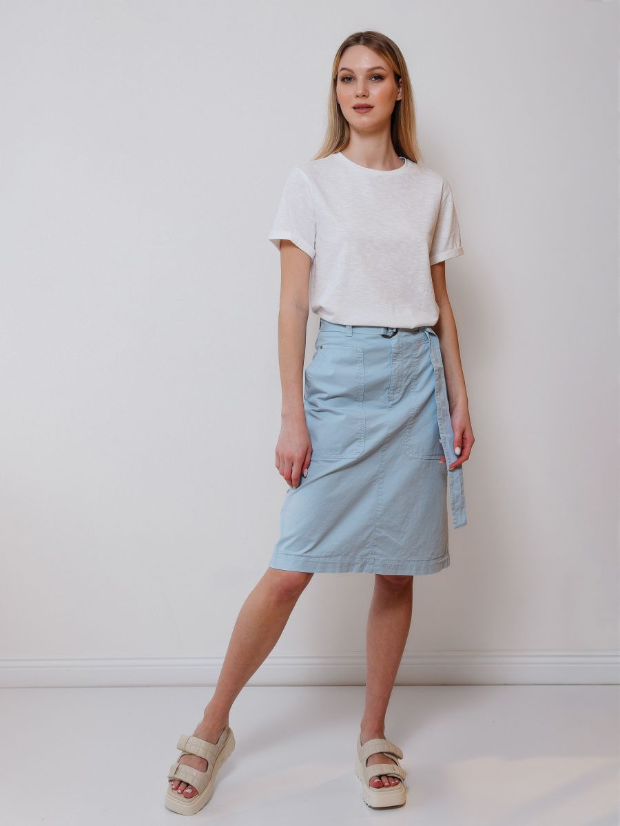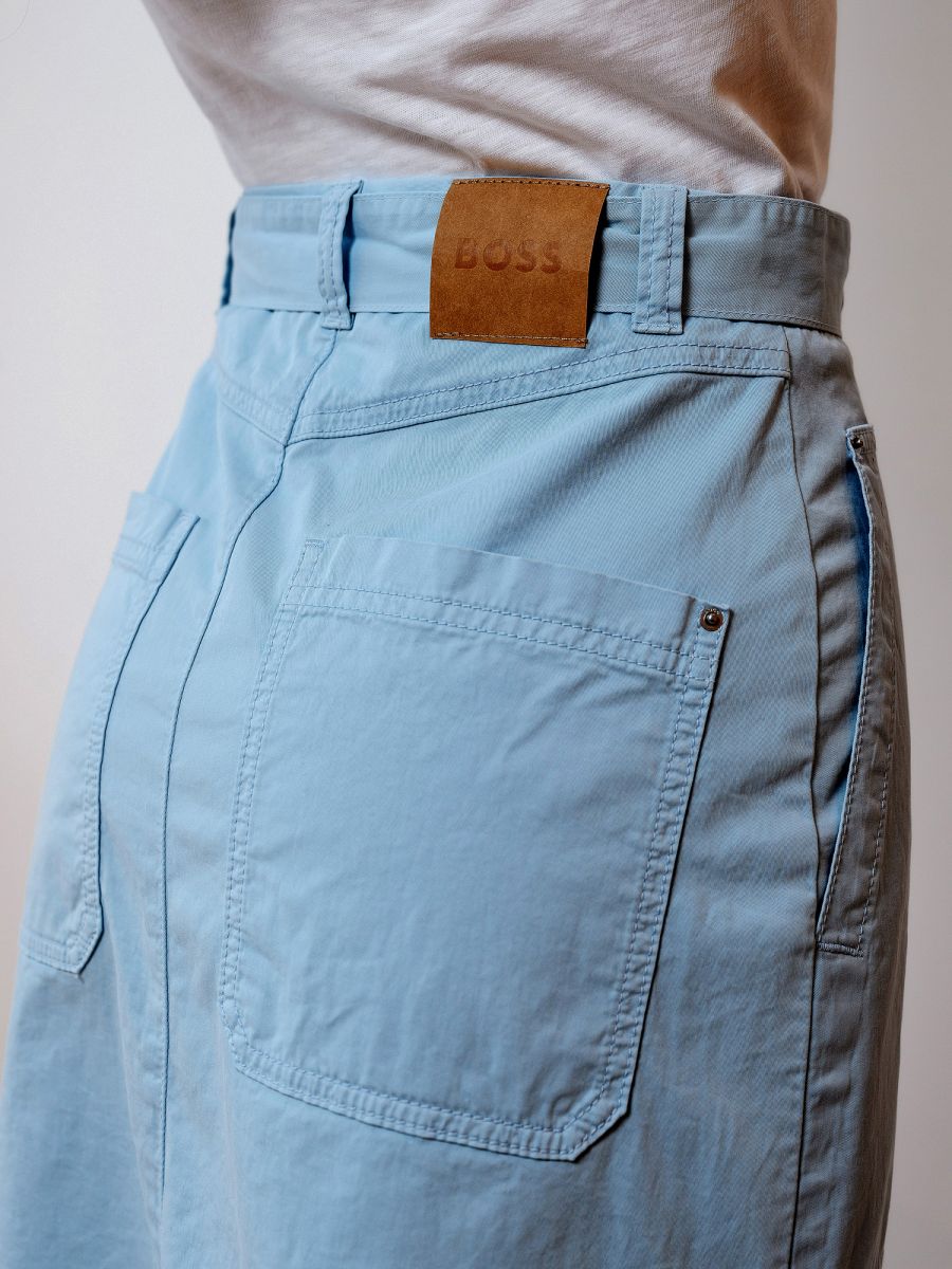 Юбка-трапеция из коллекции BOSS дополнена накладными карманами, поясом и шлицей. Модель прекрасно подойдет для создания летнего непринужденного образа. Данное изделие изготовлено как минимум на 60% из сертифицированного органического хлопка. Органический хлопок выращивается только с использованием веществ естественного происхождения и без генетически модифицированных семян.